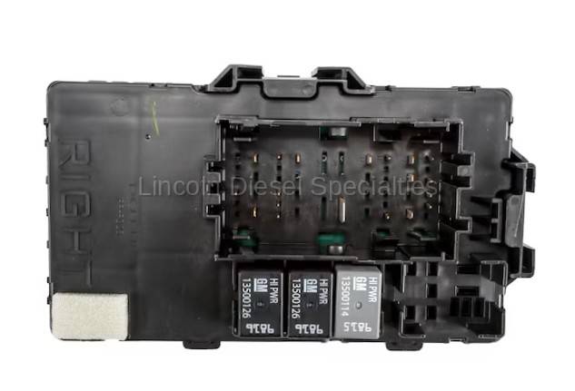 GM OEM fuse and relay block. Passenger side, right hand, WITH power rear slider.