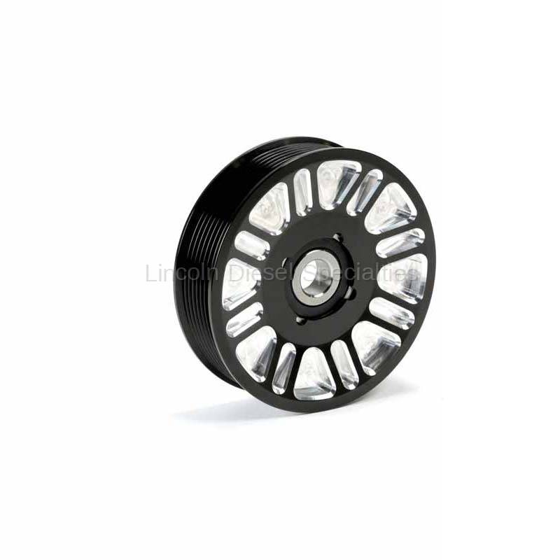 Fleece Dodge/Cummins 5.9/6.7L, Upper Fan Idler Pulley. Billet aluminum upper fan idler pulley in black anodized finish. Complete with bearing.