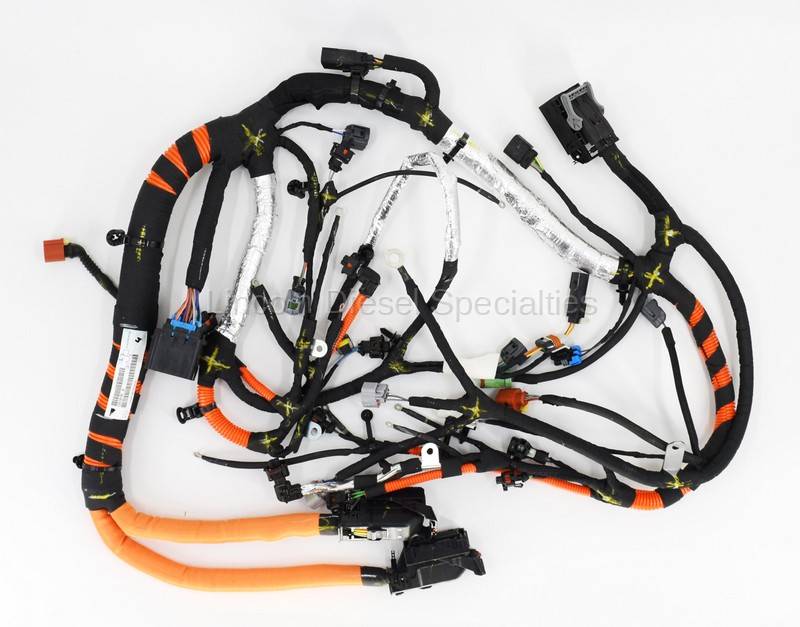 GM OEM Engine Wiring Harness (LML). GM OEM Engine Wiring Harness includes connector leads to the following: Injectors, Glow Plugs, Glow Plug Module, Turbo Sensor, FPR, Fuel Rail Pressure Sensor Pigtail Harness, Cam Sensor, Crank Sensor, Fuel Temp Sensor, Y-Bridge Sensor, Fuel filter Housing Sensor(2), Bail Connectors(2), Coolant Temp Sensor, Passenger Block Ground (some harness connections vary).