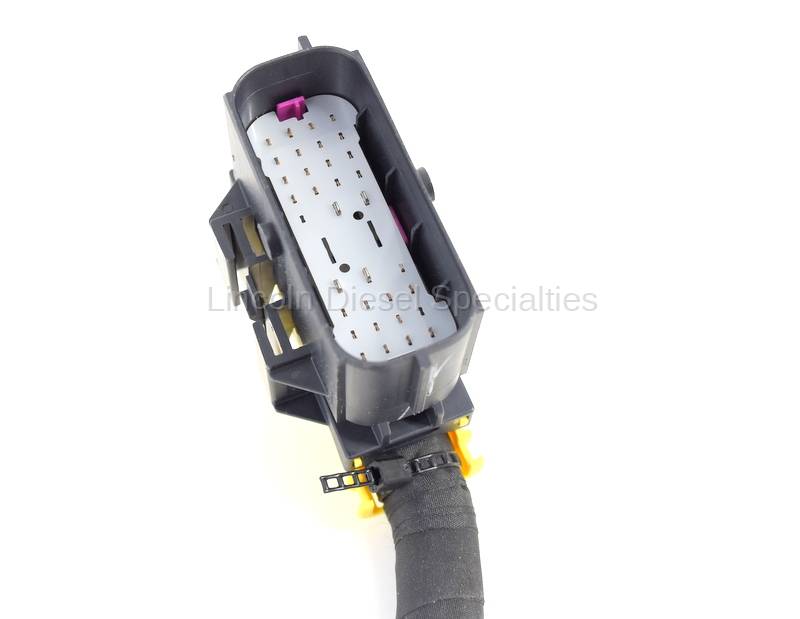 GM OEM Engine Wiring Harness. GM OEM Engine Wiring Harness includes connector leads to the following: injectors, glow plugs, glow plug module, turbo sensor, FPR, fuel rail sensor, cam sensor, crank sensor, fuel temp sensor, Y-Bridge sensor, fuel filter housing sensor (2), bail connectors (2), coolant temp sensor, passenger block ground. (harness connections vary)