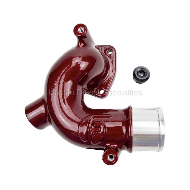 WCFab X Fleece Performance Engineering Thermostat Housing for 1998.5-2018 5.9L & 6.7L Cummins is a direct replacement upgrade for the unsightly OEM part. This coolant elbow kit features -8 AN O-ring auxiliary port with plug for accessories or customized coolant routings. Comes powder coated in your choice of color to complement other upgrades such as our Upper Coolant Pipe, Intake Kits and Valve Covers.