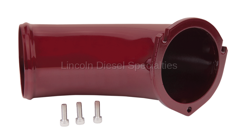 The WCFab LB7 4 in. High Flow Cast Aluminum Turbo Intake Horn for 2001-2004 Chevrolet Silverado or GMC 2500 / 3500 HD trucks equipped with the 6.6L Duramax Diesel is the largest and highest flowing turbo inlet on the market. Replaces the restrictive OEM turbo mouthpiece to provide increased airflow to your turbocharger for improved engine performance and throttle response. Compatible with factory IHI Turbo or upgraded drop in IHI Turbos and aftermarket intakes. Great upgrade offering quicker spool up and more HP! Max-effort tuned trucks can see 10-15 HP gains while applications with upgraded turbochargers can experience as much as 20 HP improvements. Custom powder coated in the color of your choice. Made in USA! Pair it with our 4" Cold Air Intake Kits and Stage 1 High Flow Bundle Kits along with custom performance tuning and drop in performance turbochargers for maximum performance gains.
