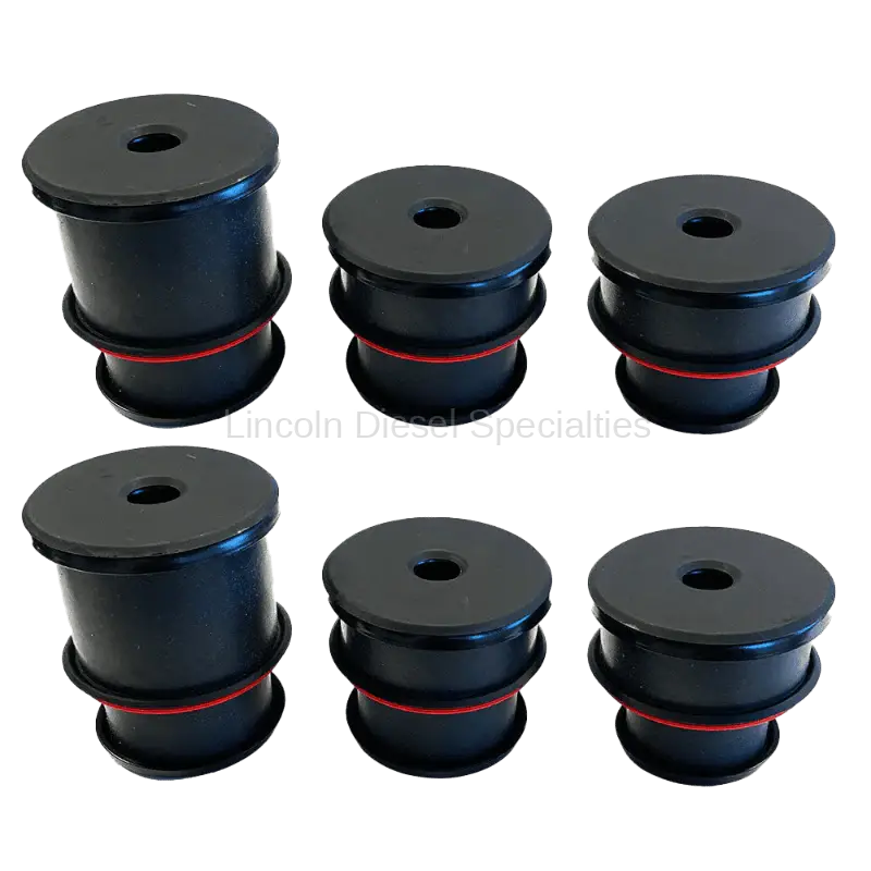 These bushings offer great vibration isolation and will not crack or breakdown like the OEM foam or rubber bushings. Also comes with corrosion resistant coated steel cups and bolts. Stock body mounts deteriorate over time and cost a fortune. Urethane mounts are hard and squeak. S&B’s Silicone Body Mounts have a smooth stock ride and last the life of your truck. The cap bushings have a distinct boss feature on it that matches the slot on the mounting tabs. They are designed to key into the frame tab and give it an OEM fit.
